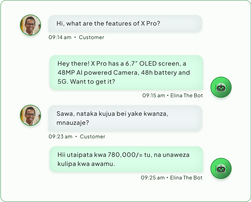 Supports English, Swahili, French, and more